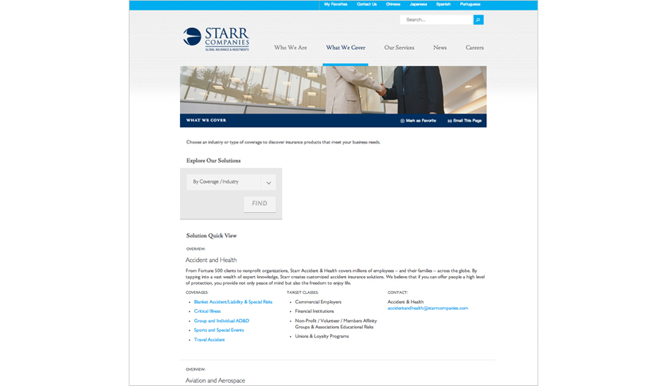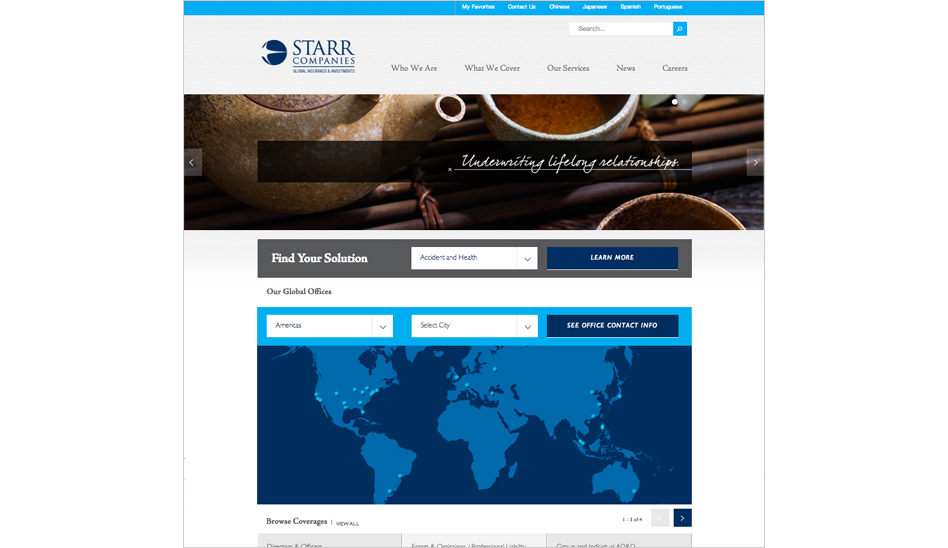 Starr Companies needed a site that reflected their unique set of offerings. Research included user interviews and employee surveys to create personas.